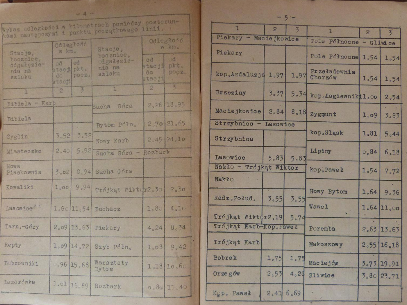 Służbowy rozkład jazdy Górnośląskich Kolei Wąskotorowych ważny od 14 maja 1950 roku
