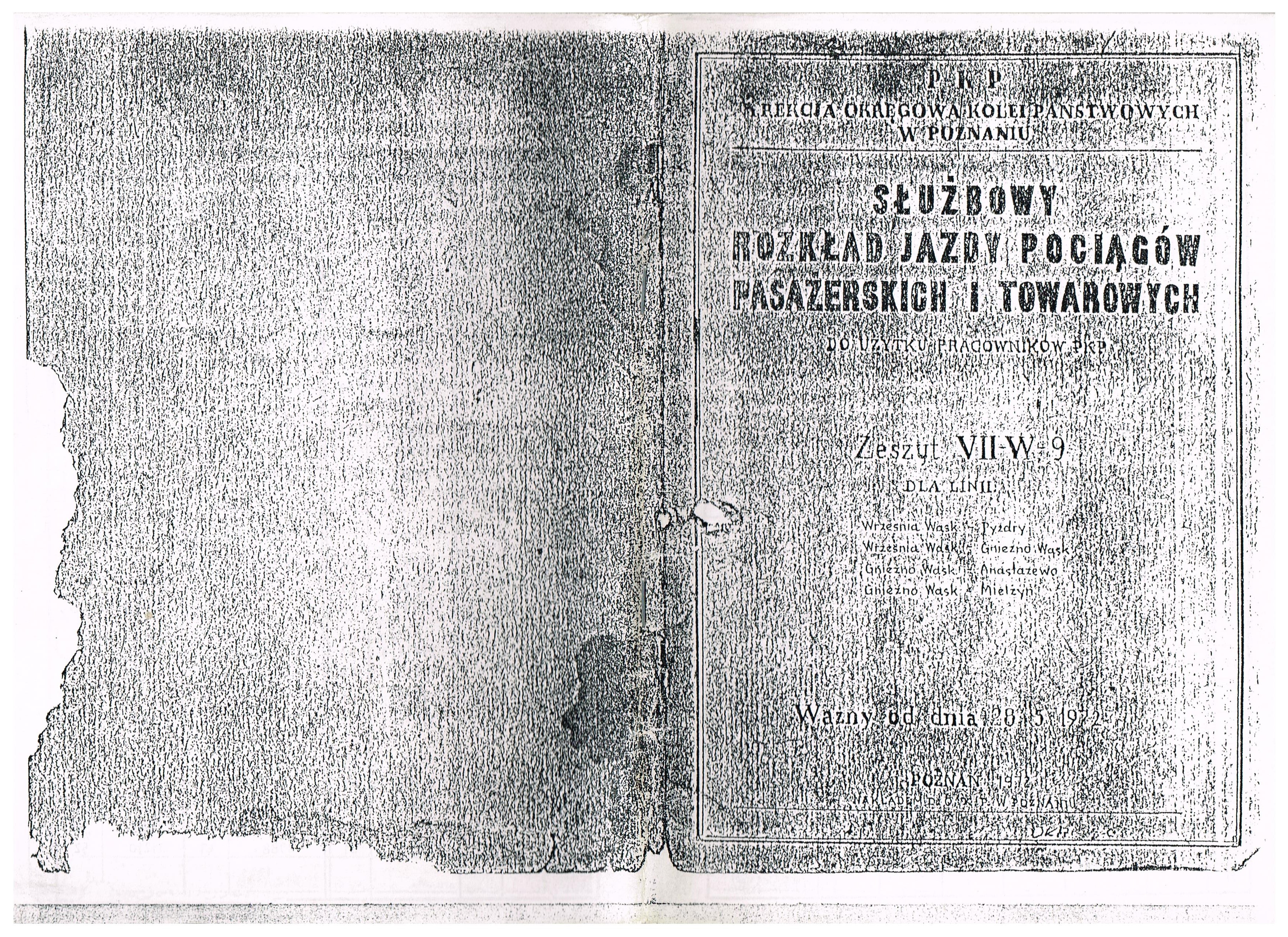 Służbowy Rozkład Jazdy Pociągów Pasażerskich i Towarowych Zeszyt VII-W-9 1972 Wrzesińska i Gnieźnieńska KD
