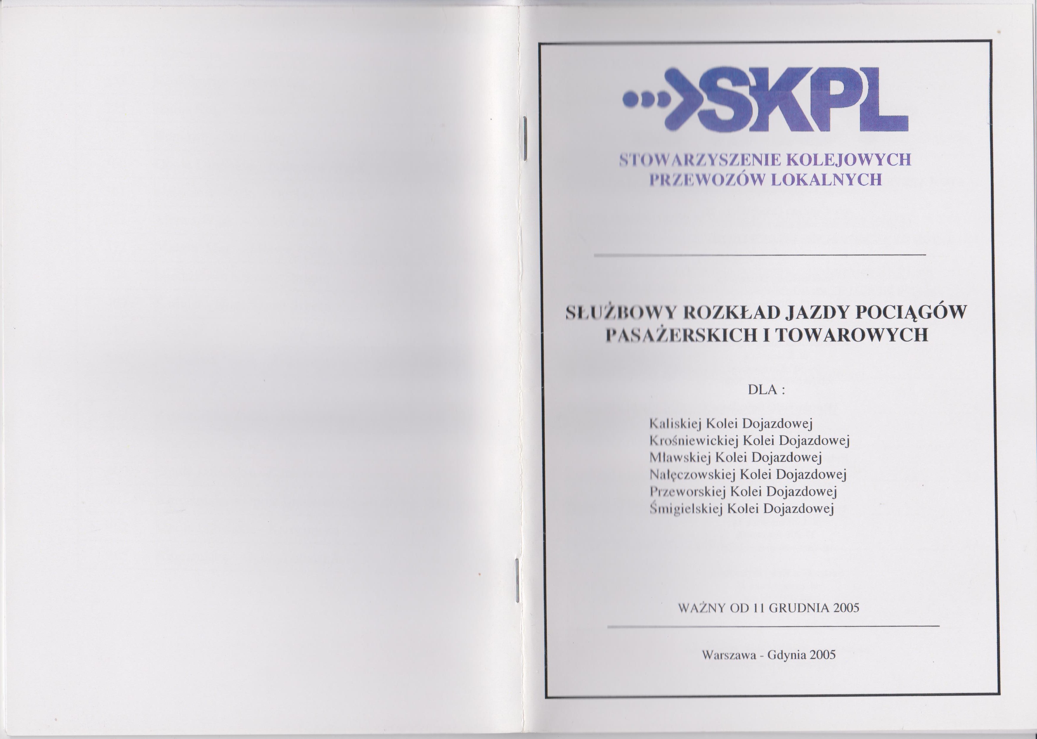 | Tytuł | Służbowy Rozkład Jazdy Pociągów Stowarzyszenia Kolejowych Przewozów Lokalnych z roku 2005 | ||
