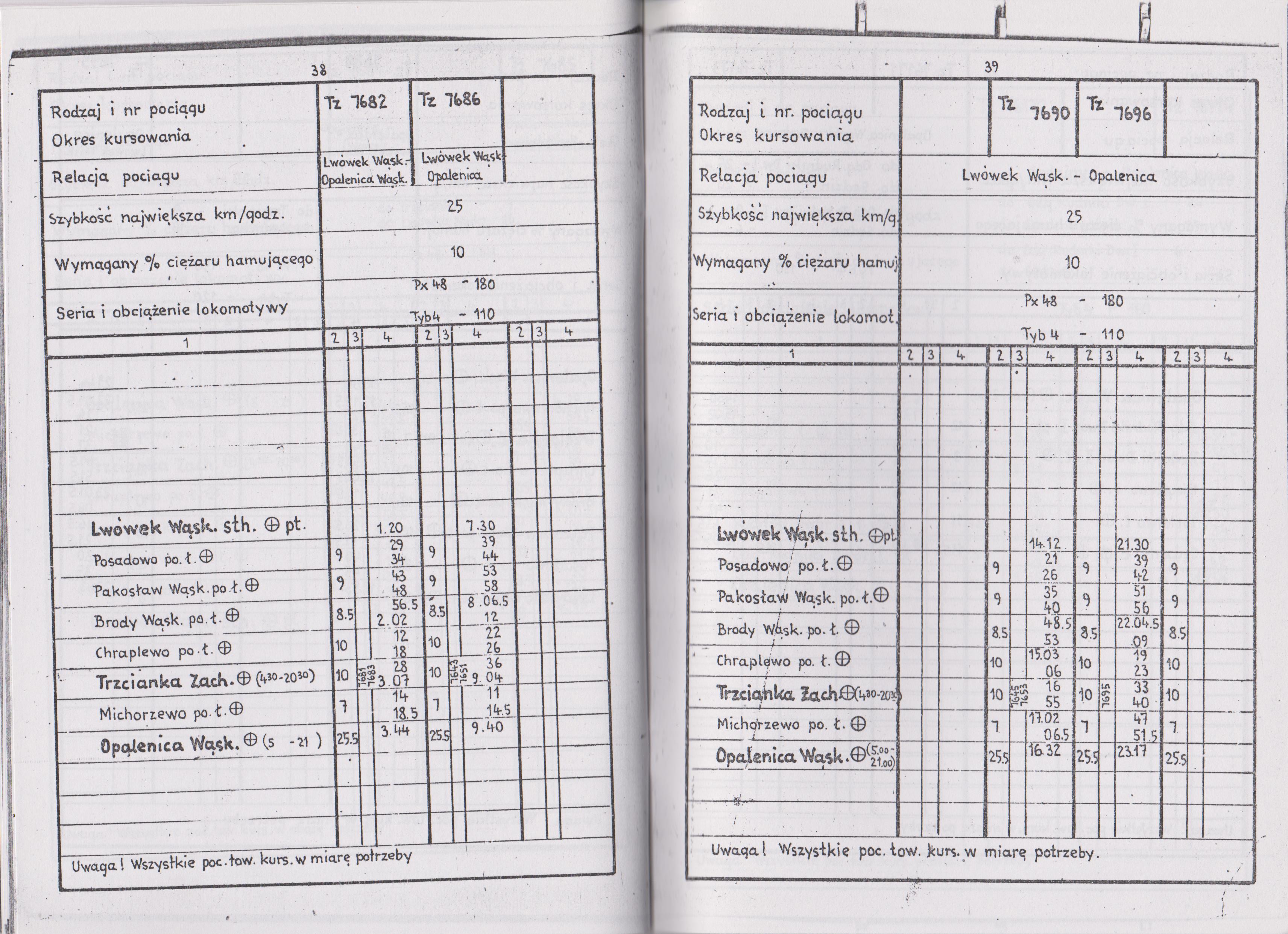 Służbowy Rozkład Jazdy Opalenickiej KD z 1966 roku